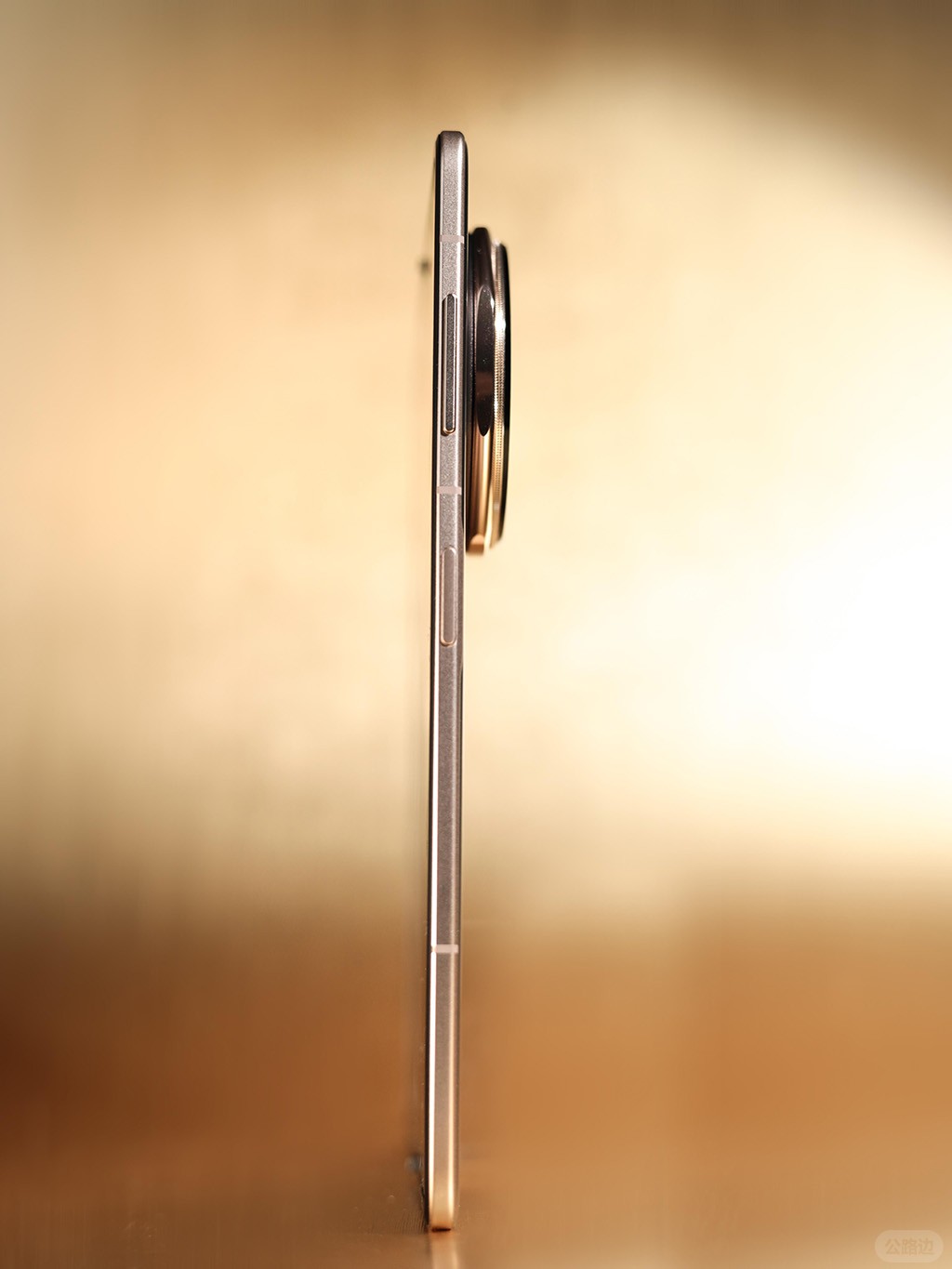Magic V5有金、褐、白和黑四种配色。测试手机为白色,重量217克,折叠厚度是8.8毫米,展开厚度为4.1毫米。它的机背设计跟Magic7 Pro相似,采用全玻璃材质,上面有一个“天圆地方”超大相机模组,看起来很时尚典雅。值得一提的是,荣耀随机附送一个精美的手机壳,一体式金属环环绕在相机模组周围,可翻转出来当作支架使用,方便用户立起手机观看影片或视频通话。 荣耀Magic V5展开厚度是4.1毫米,机背有一个超大相机模组。