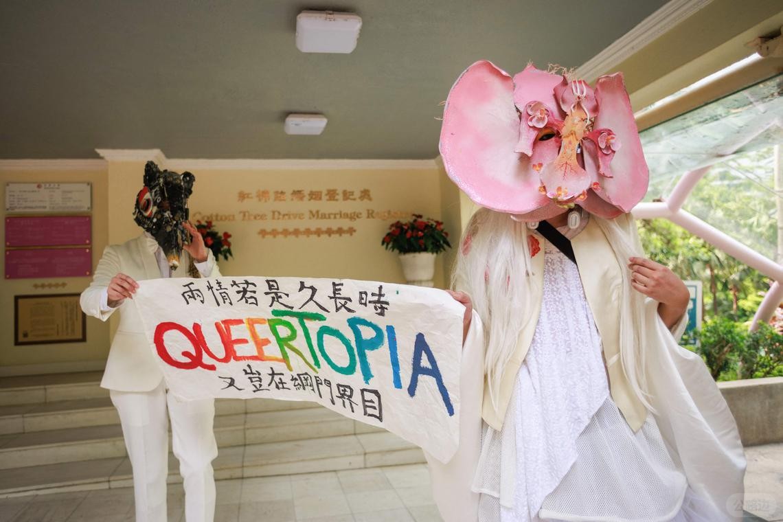 Francis则认为,政府大概率会推迟立法,但这或许是少数群体争取对话的机会。如果社会组织能参与咨询,可能将推动权益迈出实质性一步。 两名艺术家今年7月28日在香港棉树街婚姻登记处外举着横幅,呼吁性少数群体在社会上获得平等权利。