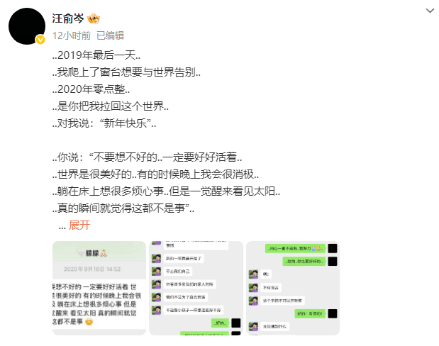 9月11日,工作室证实于朦胧在北京坠楼身亡,年仅37岁。13日,制片人、编剧汪俞岑发文悼念于朦胧,称于朦胧曾救下了想轻生的她,她表示:“是你把我拉回这个世界......可你怎么就不在了......你一次又一次让我重新来爱这个世界,而如今,我的精神支柱没了,你恐高,又那么怕疼不是吗?” 汪俞岑全文: