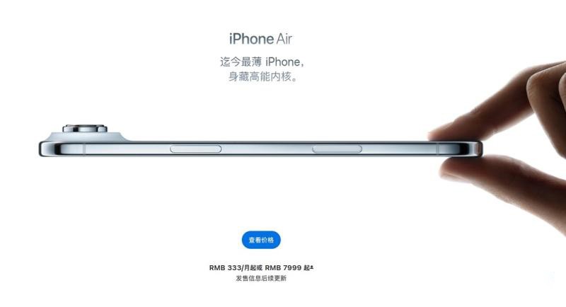 苹果中国大陆官网,iPhone Air的页面显示:“发售信息后续更新”