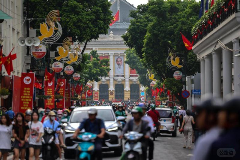 越南发布草案,管制多个领域开发项目的进行。照片摄于9月1日,越南首都河内著名地标河内歌剧院前的车流。