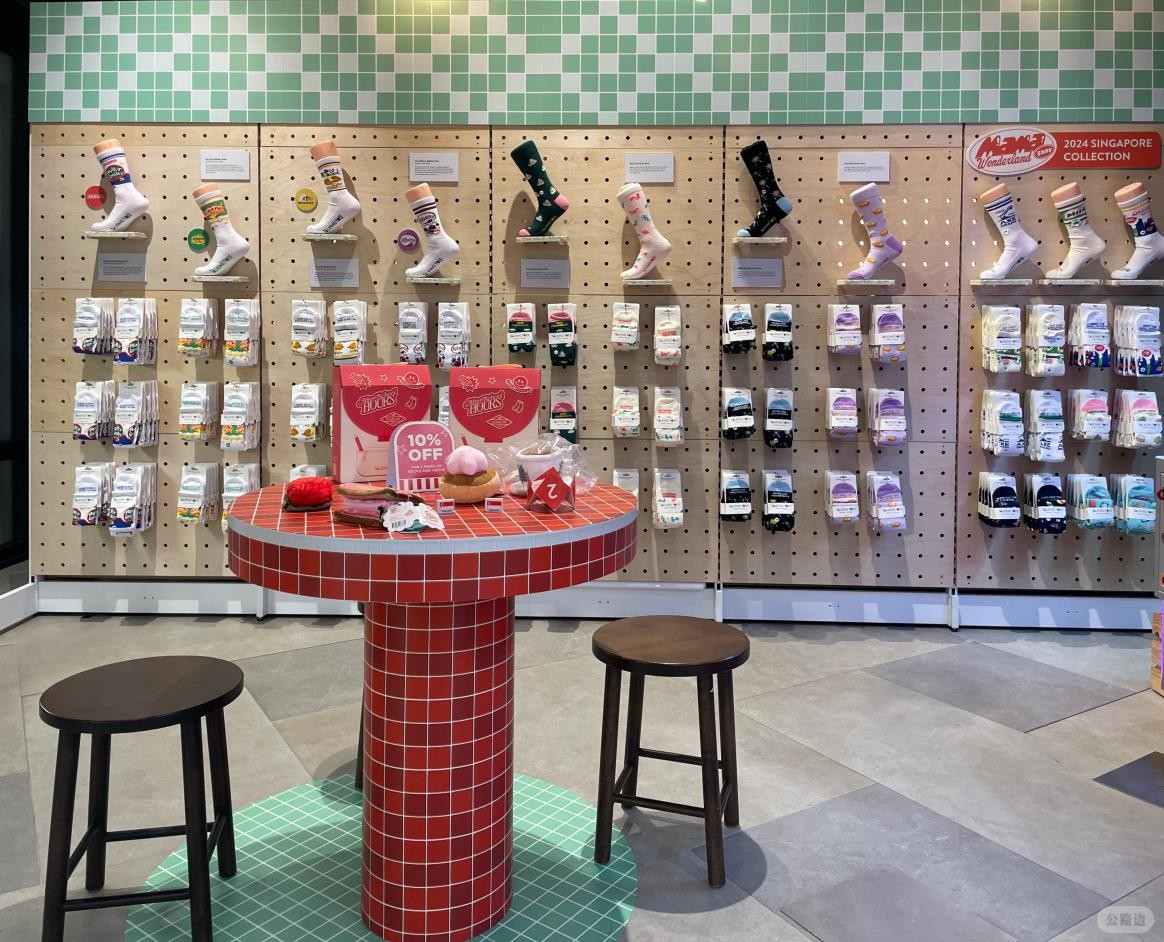 Dors一楼零售空间辟美妆、非数码好物、热带家饰三大沉浸区。经团队精挑细选的时尚衣饰则以主题分类贯穿整个店面。 “Talking Toes”袜子将“零食”穿在脚上,食指大动,脚趾也大动。