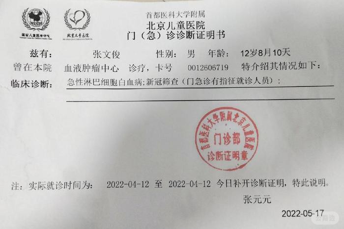2022年4月27日,因化疗缓解差俊俊的病情被升为高危组,这个消息让刚做完手术3天的刘月华忍着巨痛匆匆出院。