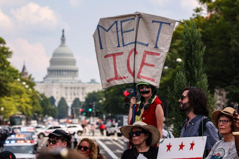 ICE is conducting routine law enforcement in Massachusetts, arresting 370 immigrants in March and nearly 1500 immigrants in May this year. The people of Washington D.C. held a demonstration on Saturday to oppose Trump's deployment of the National Guard to the area. Demonstrators held up bilingual banners in English and Spanish, which read: 'End the occupation of Washington!'