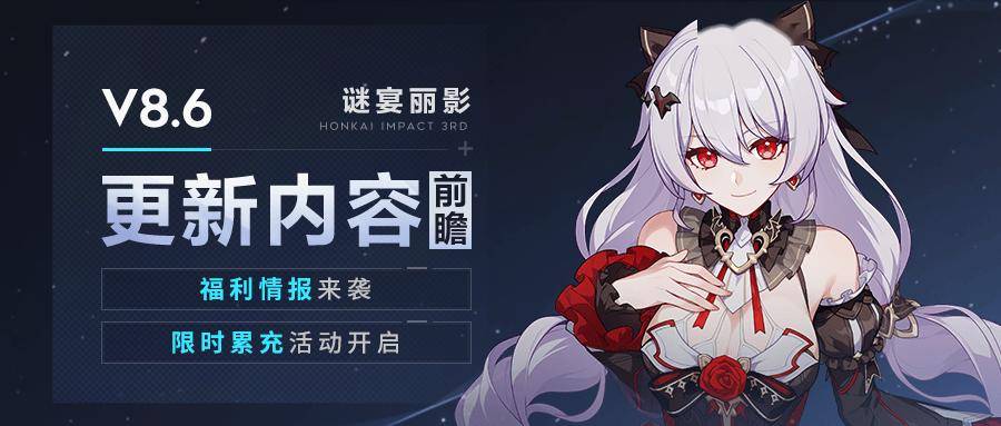 亲爱的舰长: 为了给舰长带来更好的游戏体验,《崩坏3》将在12月4日(周四)进行版本更新维护,维护完成后将更新为8.6版本——「谜宴丽影」。 8.6版本维护通知 >>维护时间 12月4日06:00~11:00 维护时间可能会根据实际情况有所调整,请舰长以实际能够进入游戏的时间为准。 维护期间舰长暂时无法登录游戏,请舰长相互转告,并留意游戏时间,以避免造成不必要的损失。 爱酱将向舰长发放以下补偿,请在维护结束后尽快进入到游戏邮箱领取。 >>补偿内容 600水晶 发放范围:8.6版本更新维护前已达到9级及以上的舰长。 >>新活动预告 8.6版本「谜宴丽影」即将更新,全新S级角色「窈窕谍影」登场!参与本期该角色补给可享首次十连五折。 主题活动「特工丽影:晚宴疑云」即将开启,参与活动可获取女武神·巡矢全新服装「青柑时光」、完美特工勋章、水晶、根源棱镜等奖励~ 福利活动「不渝之誓」即将开放,活动期间完成5个活动任务中的任意4个,即可领取「月下誓约·予爱以心」角色卡。 孑遗千星适用全新服装「白丝绒小姐」即将登场,可通过商城礼包币购买,首周限时特惠1680礼包币。 还有登录活动「特别作战」、限时累充「星愿祈礼」等内容等待舰长体验,请查看吧! 预下载功能已开启 《崩坏3》预下载功能已在PC、iOS和安卓端开启! 舰长可以提前预下载新版本资源,在版本更新维护结束后可以减少资源下载消耗的时间,快速体验到新版本内容~ >>预下载开放时间 12月2日12:00 >>更新方式 ◆ 移动端(iOS&安卓)预下载方式 1)移动端的舰长可前往舰桥界面右下角爱酱手机入口——手机预下载,即可开始资源预下载。资源在后台下载的过程中,舰长依然可以进行游戏。 2)版本更新维护结束后,iOS设备需进入App Store并点击更新,即可体验新版本内容。安卓设备进入游戏后,需要按照游戏内弹窗提示完成更新(或进入应用商店,点击更新)。 ◆ 桌面版(PC端)预下载方式 在预下载功能开放后,启动器界面【开始游戏】按钮左侧会出现【游戏预下载】按钮,点击即可获取新版本游戏资源包。 若舰长已完成预下载,在版本更新时打开启动器,点击【更新】会直接跳过下载并进行安装;若舰长未完成预下载,则点击【更新】时,更新进度将从尚未完成的下载进度处继续。 *爱酱小贴士: 1) 舰长可前往《崩坏3》官网下载桌面版(PC端)启动器: https://bh3.mihoyo.com/ 2) 舰长可以在预下载的同时进行游戏,但由于下载会占用一定的网络带宽,建议舰长在网络状况较好的情况下才进行此操作哦。 《崩坏3》预下载功能现已在桌面版(PC端)和移动端开启,欢迎舰长们前来体验并给我们反馈。